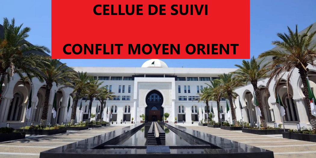 Face à cette situation au Moyen-Orient, l’Algérie a mis en place une cellule de crise pour suivre la situation de ses ressortissants, dans un contexte qualifié de « dangereuse escalade militaire » et de tensions croissantes au Moyen-Orient. Selon un communiqué du ministère des Affaires étrangères, cette initiative intervient « …