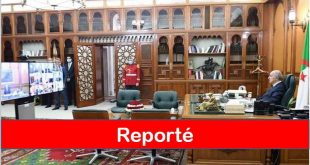 Selon un communiquĂ© de la PrĂ©sidence de la RĂ©publique publiĂ© ce matin, le Conseil des ministres prĂ©vu ce dimanche par visioconfĂ©rence et prĂ©sidĂ© par le PrĂ©sident de la RĂ©publique Abdelmadjid Tebboune a Ă©tĂ© finalement reportĂ©. Les agendas chargĂ©s Ă la fois du PrĂ©sident de la RĂ©publique et des membres du …